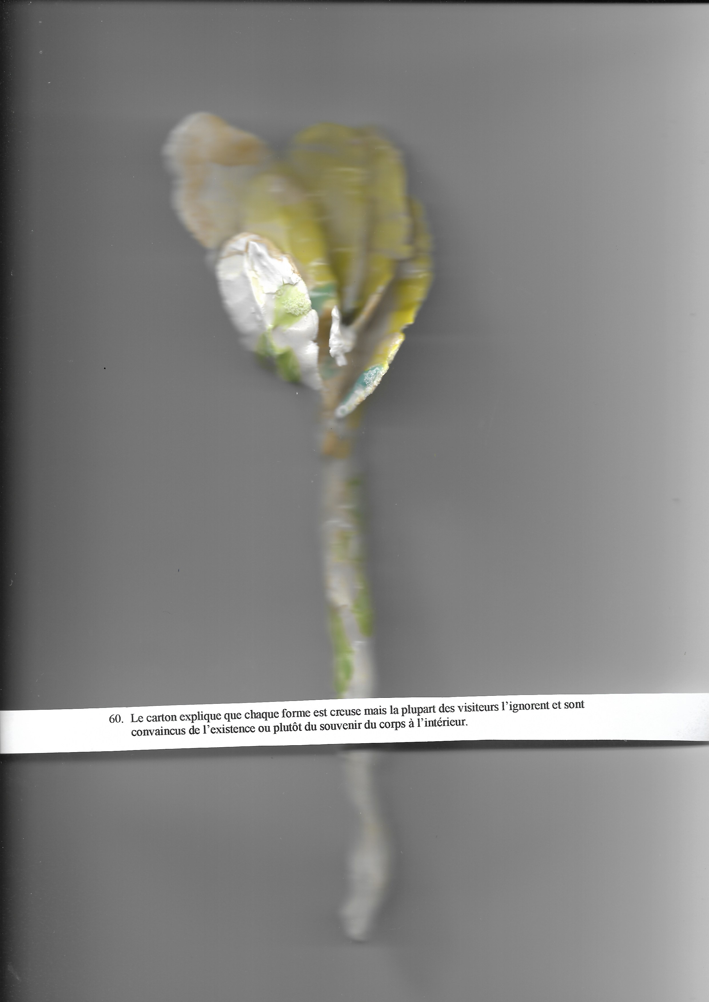 Le carton explique que chaque forme est creuse mais la plupart des visiteurs l’ignorent et sont convaincus de l’existence ou plutôt du souvenir du corps à l’intérieur.