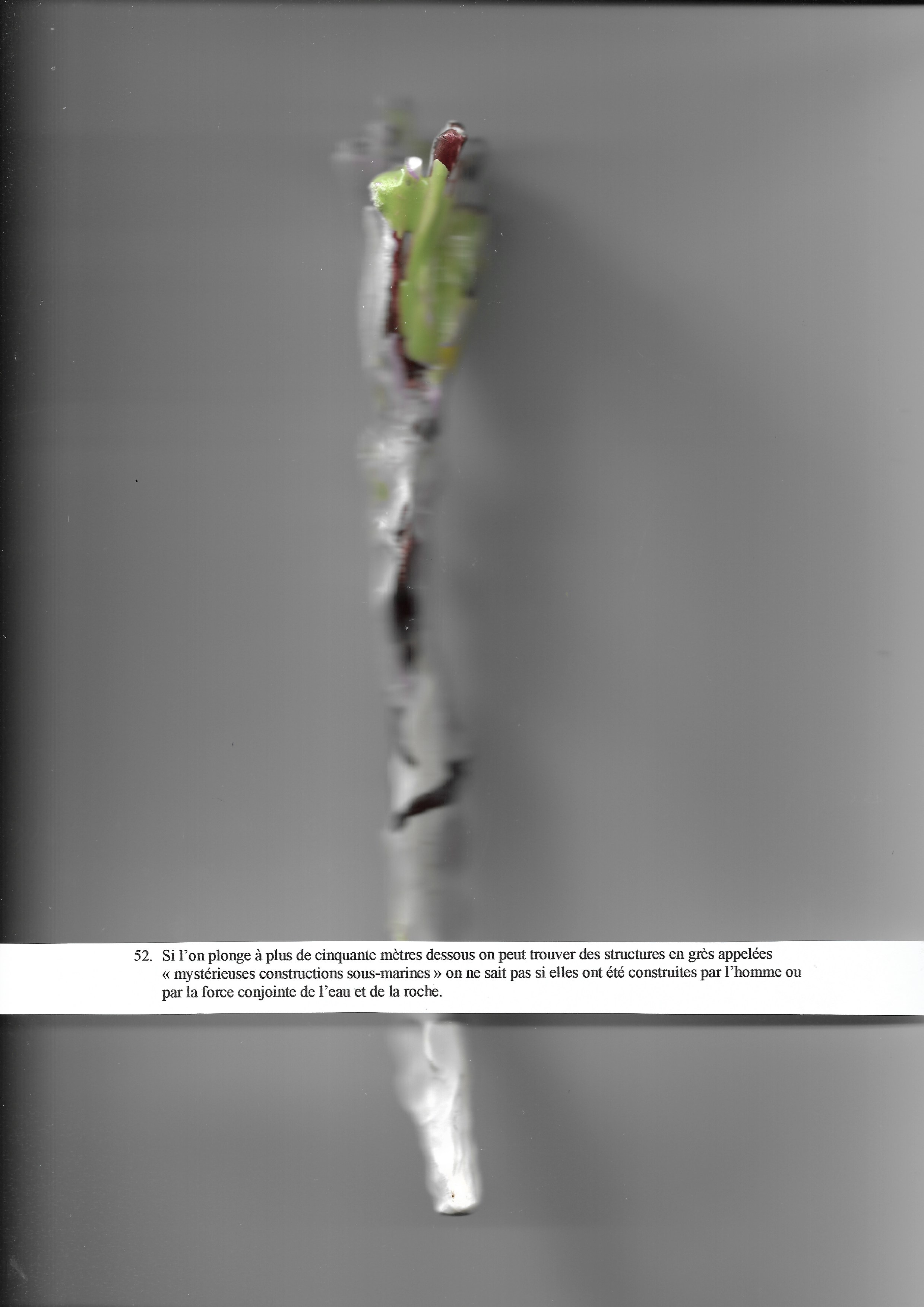 Si l’on plonge à plus de cinquante mètres dessous on peut trouver des structures en grès appelées « mystérieuses constructions sous-marines » on ne sait pas si elles ont été construites par l’homme ou par la force conjointe de l’eau et de la roche.