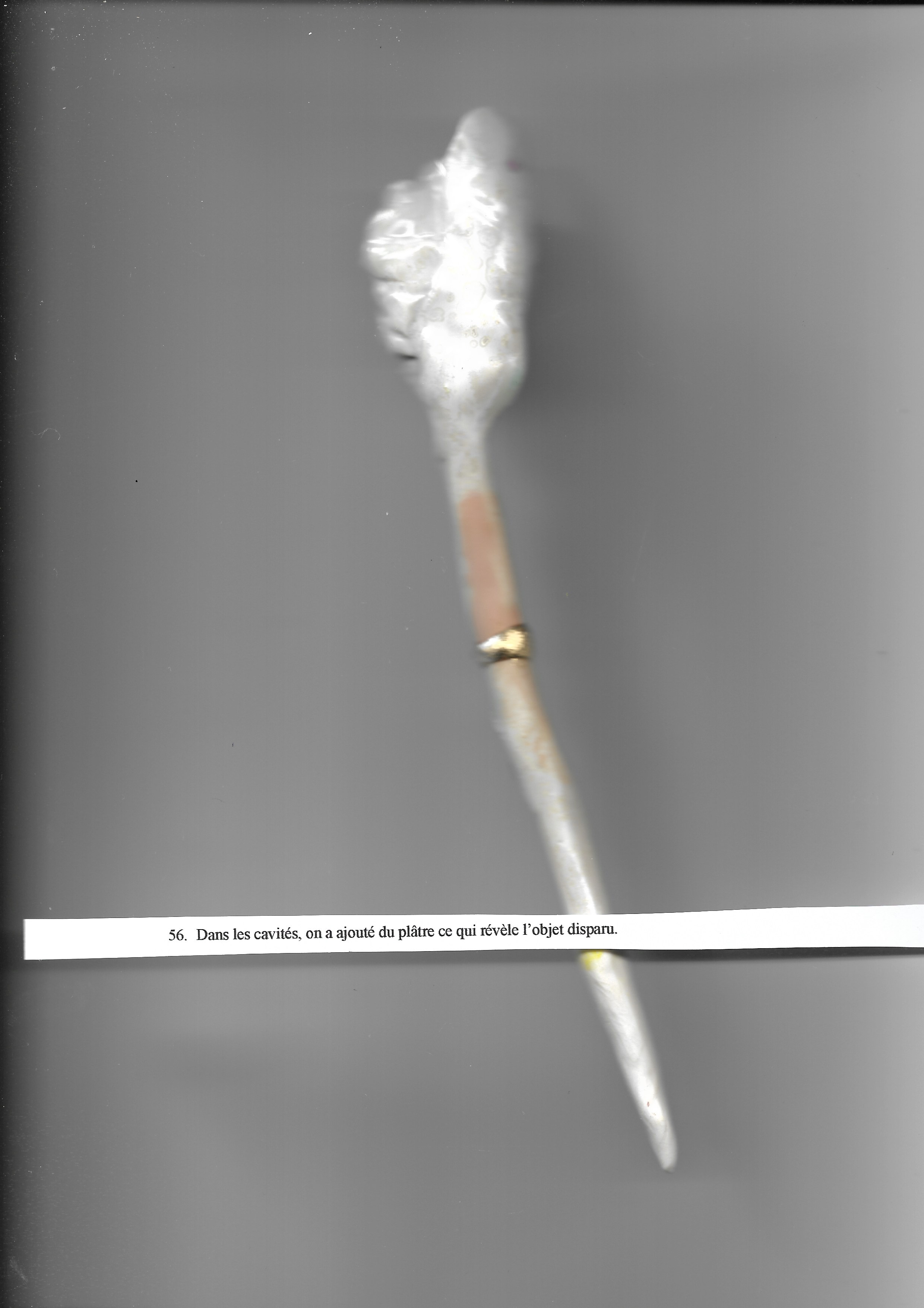Dans les cavités, on a ajouté du plâtre ce qui révèle l’objet disparu.