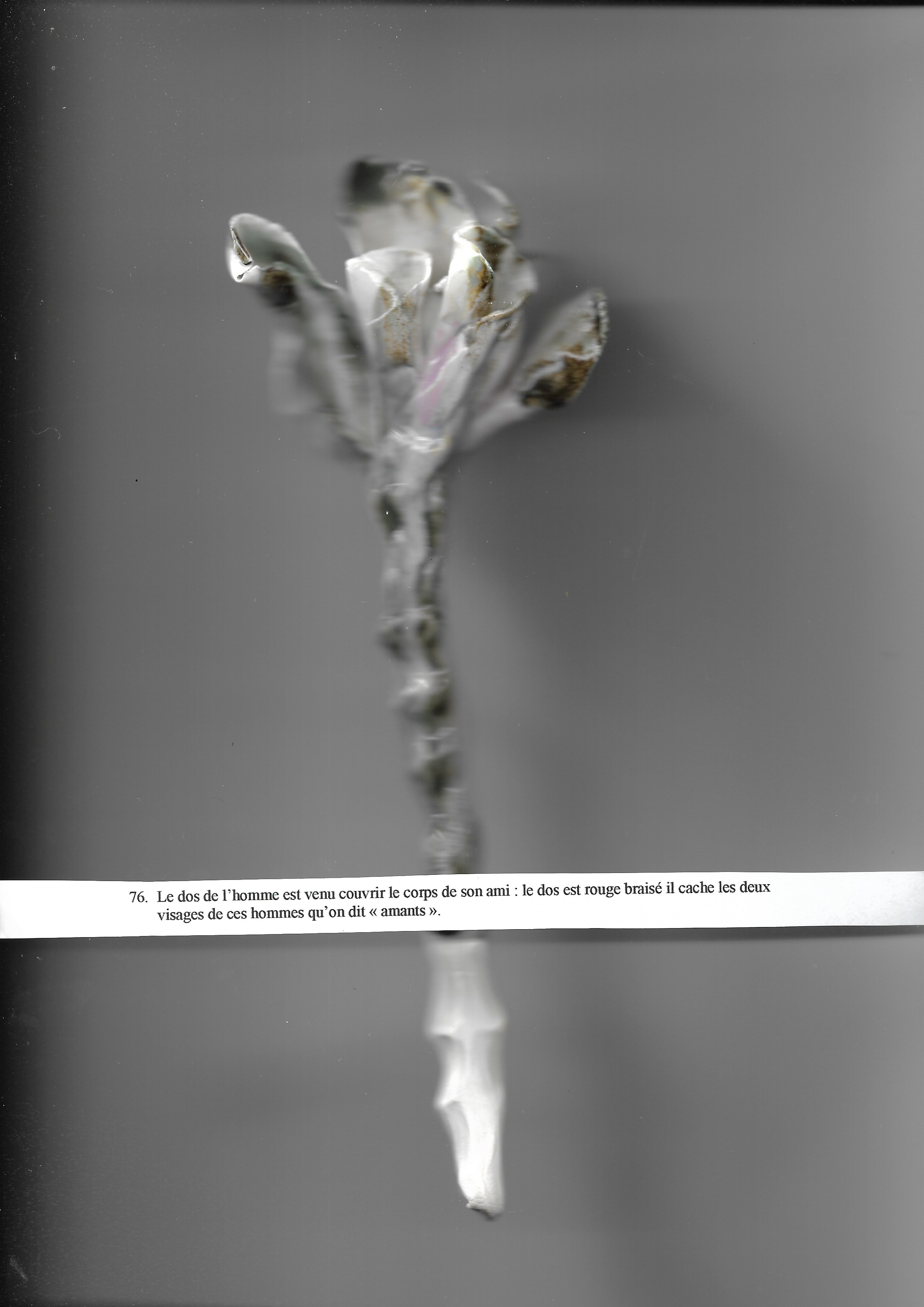 Le dos de l’homme est venu couvrir le corps de son ami : le dos est rouge braisé il cache les deux visages de ces hommes qu’on dit « amants ».