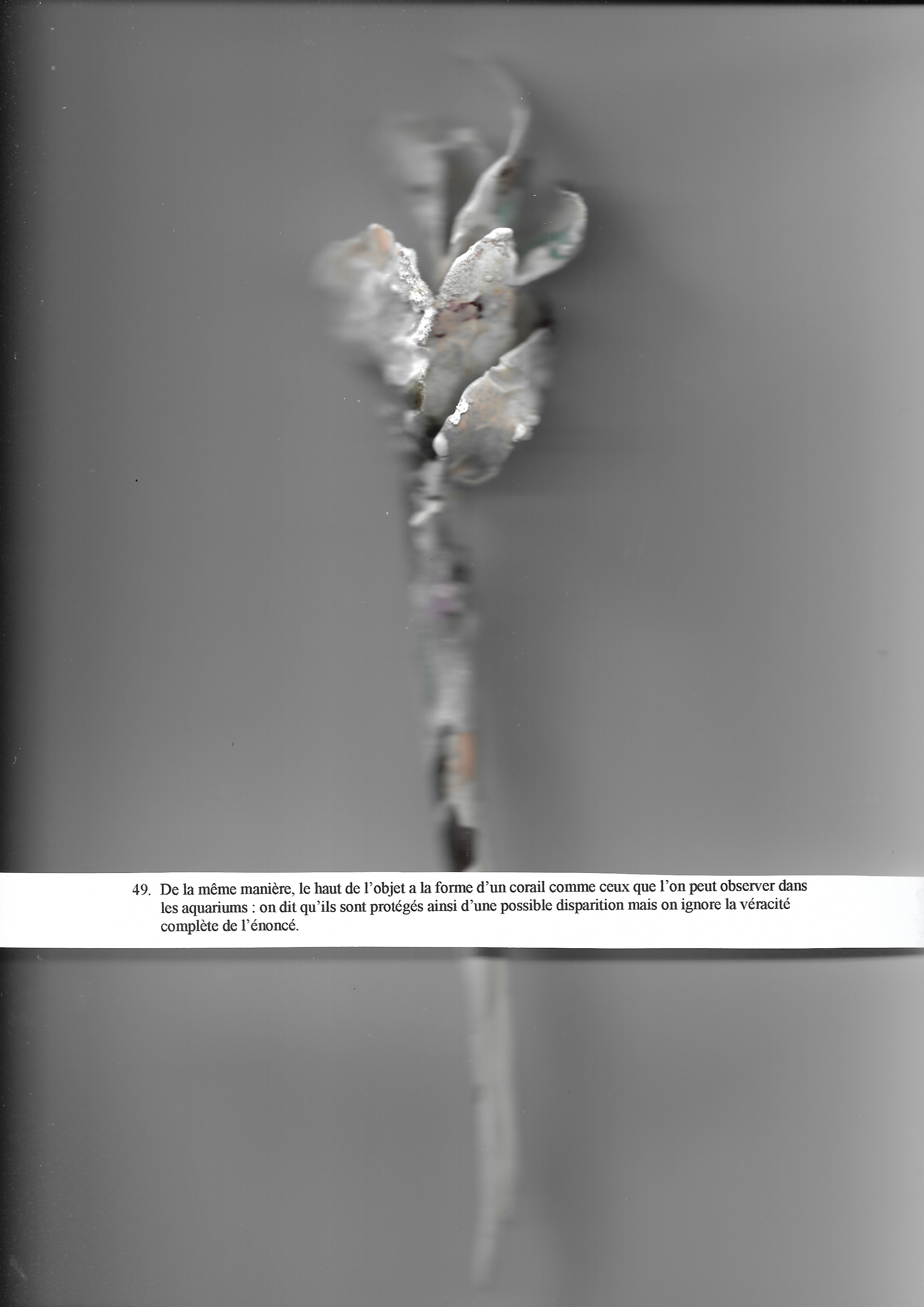 De la même manière, le haut de l’objet a la forme d’un corail comme ceux que l’on peut observer dans les aquariums : on dit qu’ils sont protégés ainsi d’une possible disparition mais on ignore la véracité complète de l’énoncé.